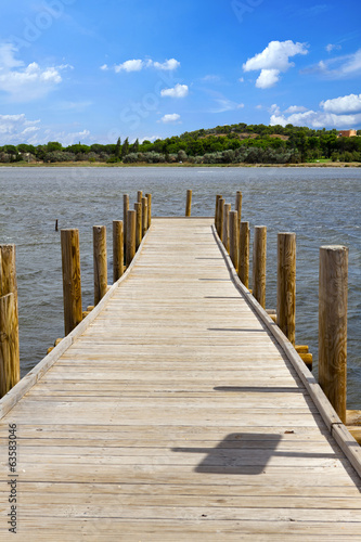© PhotoArt Thomas Klee, Fototapeta premium Holzsteg in dem Gewässer vor Gruissan