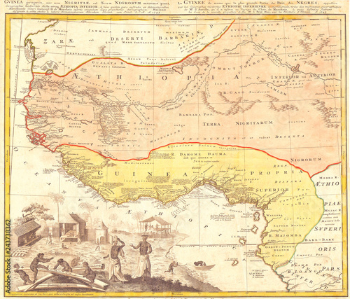 Obraz premium 1743, Homann Heirs Map of West Africa, Slave Trade references Guinea