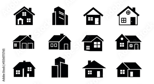Fototapeta premium Home and building silhouettes: vector illustration for real estate design in...