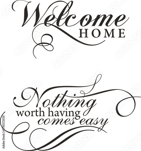© Vallentin Vassileff, Naklejka premium Home and Family quote decors, vector wall art series. Ornamental calligraphy inspirational sign designs, lettering phrases for posters, wall decals, love quotes, family holiday signs, greeting cards.