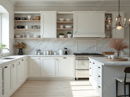 Fototapeta premium Home Appliances and Contemporary Furniture: Stylish Kitchens with Stoves,...