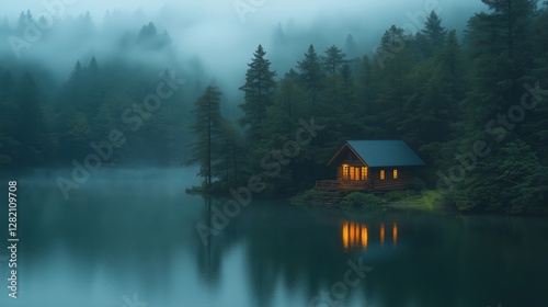 © vannet, Fototapeta premium Home at fog forest in morning