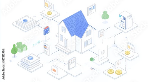 © BOJOShop, Fototapeta premium Home Automation System with Connected Devices Smart Home Technology Illustration