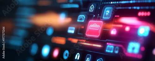 Obraz premium Home automation UI, futuristic design, sleek icons, easy device control, and smart home integration