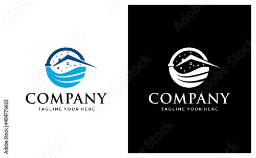 Naklejka premium Home Clean Creative Concept Logo Design Template. on a black and white background.