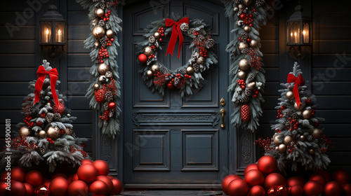 © EwaStudio, Fototapeta premium Home Decorated with Christmas Sparkle. Welcoming Christmas Entryway