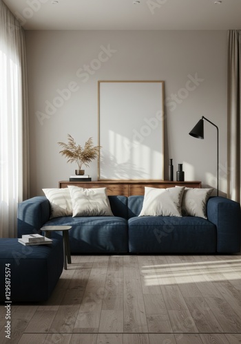Fototapeta premium Home Frame mockup. Living room wall blank poster mock up. Interior mock-up...