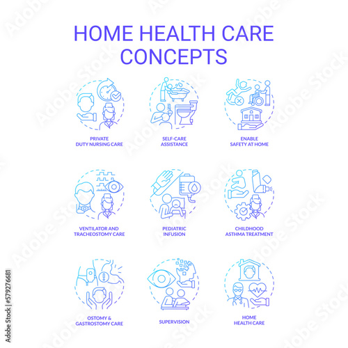 Fototapeta premium Home health care blue gradient concept icons set. Medical services providers....
