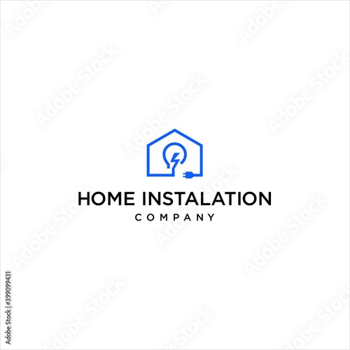 Fototapeta premium Home installation lightbulb logo. Abstract design symbolizing electricity,...