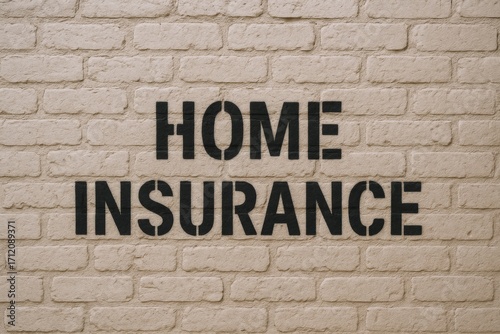 Obraz premium Home Insurance Advertisement on a White Brick Wall, Promoting Protection and...