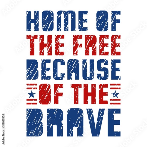© cumacreative, Fototapeta premium Home of the free because of the brave quote. Independence day Quotes