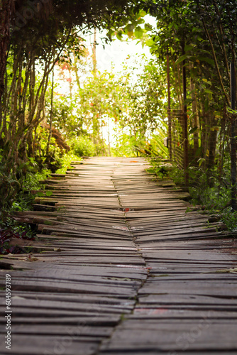 Obraz premium home page garden concept with paths made of wood and pebbles