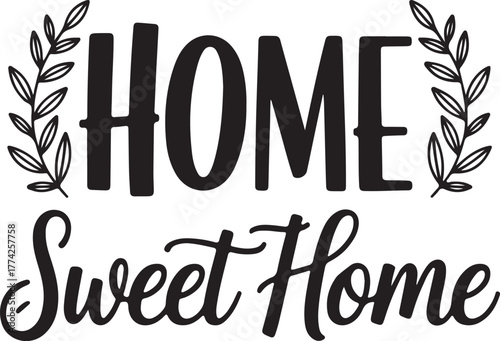 © Miraz Art, Naklejka premium Home sweet home text with floral elements