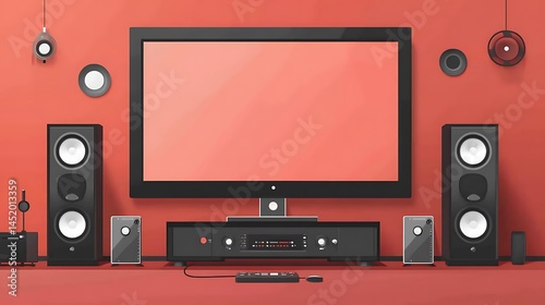 © MASJAB, Obraz premium Home theater system with red wall.