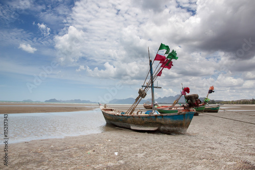 © peachloveu, Fototapeta premium homegrown fishing boats mooring on beach