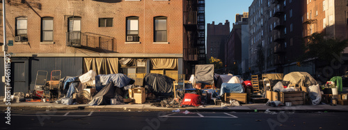 © Studio Nova, Naklejka premium Homeless tent camp on a city street