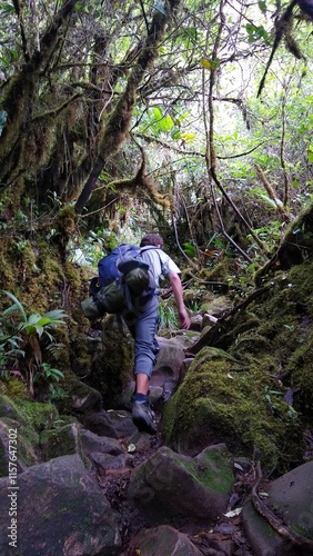 Fototapeta premium homem em trilha par amonte roraima