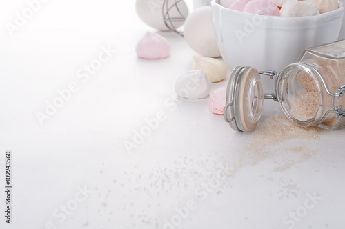 Fototapeta premium homemade colored meringue, sugar and eggs