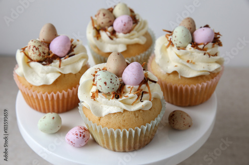 © SewcreamStudio, Obraz premium Homemade Easter eggs cupcakes