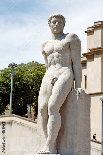 © Bruno Bleu, Fototapeta premium Homme debout de pierre blanche.