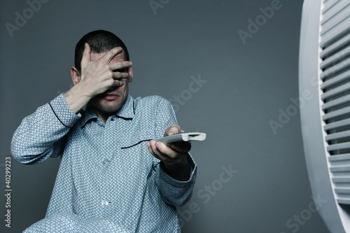 © mariesacha, Naklejka premium homme effrayé regardant la télévision en zappant