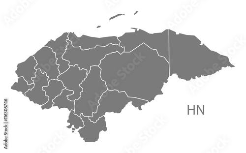 © Ingo Menhard, Fototapeta premium Honduras departments Map grey