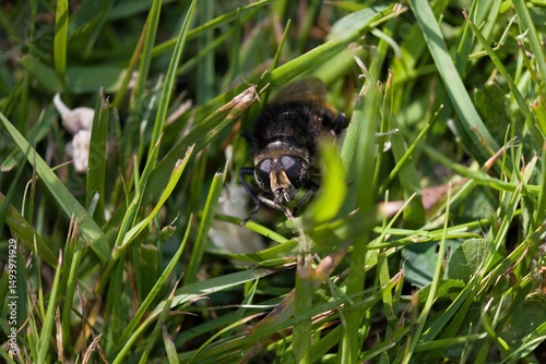 © Wattophotos, Obraz premium Honey bee crawling in grass.