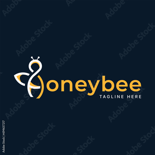 Fototapeta premium Honey Bee Wordmark Text Logo design Modern Minimal Simple Concept