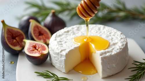 © LinhChi, Fototapeta premium honey dripping down the cheese next to the figs