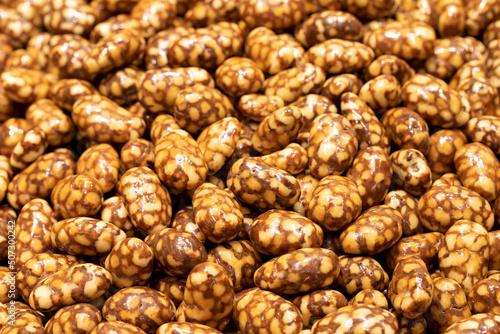 Obraz premium Honey hazelnut dragee. Honey filled dragee. nut dragee. Sweet snack. close up