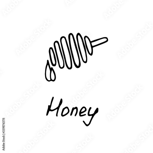 © Lidia_sv, Obraz premium Honey logo. Hand drawn icon and hand written inscription. Vector illustration