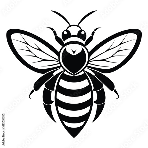 © Shipon, Obraz premium Honeybee Outline, Black and White Silhouette, Insect Illustration, Honeycomb Pattern, Wings