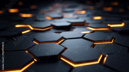 Obraz premium Honeycomb of dark gray hexagons with glowing orange edges