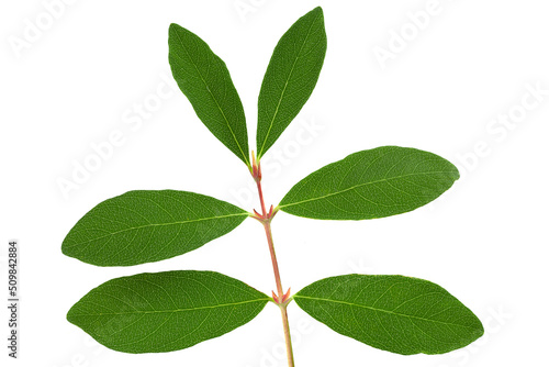 © Leonid Nyshko, Fototapeta premium Honeysuckle berry leaf closeup