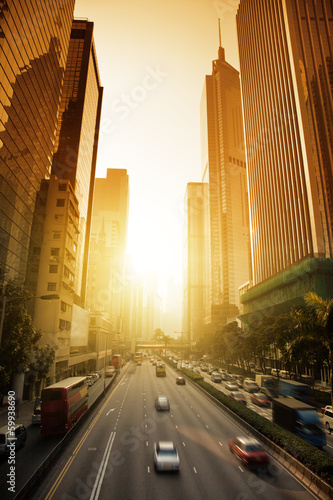 © Iakov Kalinin, Fototapeta premium Hong Kong Business District w czasie zachodu słońca