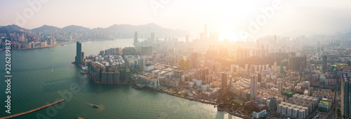 © Cozyta, Fototapeta premium Hong Kong City at aerial view in the sky