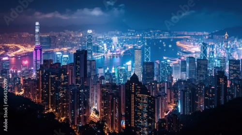 © muhammad, Fototapeta premium Hong Kong city skyline at night