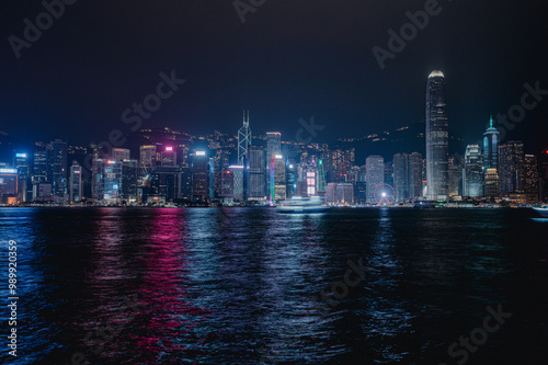 © Hide_Studio, Fototapeta premium Hong Kong City Skyscraper Buildings and Business Financial District Central, Landmark Harbor View of Hong Kong City Skyline and Skyscrapers Cityscape Downtown at Sunset. Travel Sightseeing of HongKong