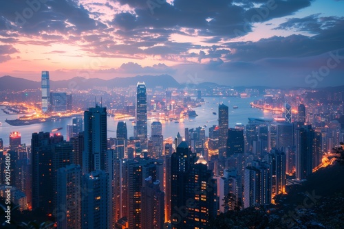 Fototapeta premium Hong Kong Cityscape at Sunset