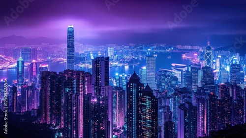 Fototapeta premium Hong Kong Cityscape Night View Illuminated Skyscrapers