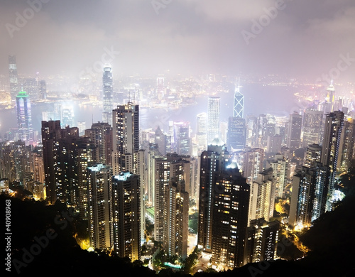 © Iakov Kalinin, Fototapeta premium Hong Kong island from Victoria's Peak at night