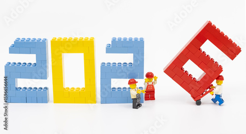 © LT, Obraz premium Hong Kong - July 21 2025: workers set up the new year 2026 wording