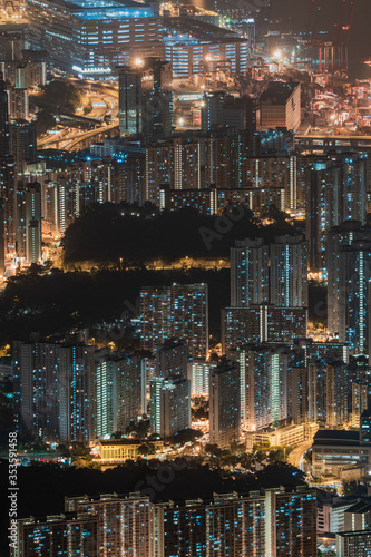 © Wilson Chu, Obraz premium Hong Kong Night city building view scene