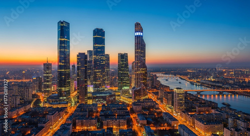 Fototapeta premium Hong Kong's iconic city skyline at night featuring illuminated skyscrapers...