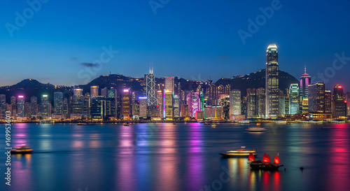 © afifa, Fototapeta premium Hong Kong Skyline with Victoria Harbour at Night