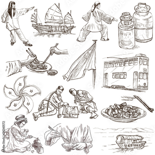 Obraz premium Hong Kong travel - Hand drawn illustrations no.2, white pack