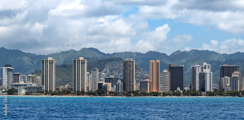 © Susan, Fototapeta premium Honolulu skyline with mountains in the background