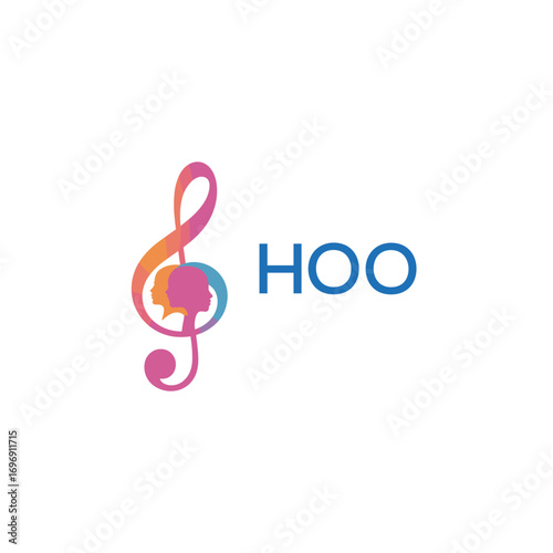 Fototapeta premium HOO “Colorful music logo with human faces and treble clef design” HOO Later Logo, “Creative music academy logo with silhouette heads and notes”