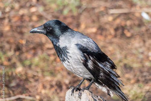 © Dmitrii Potashkin, Obraz premium Hooded crow, corvus cornix, standing on the lawn in the spring or summer
