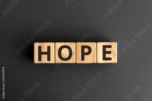 Obraz premium Hope - word from wooden blocks with letters, a feeling of trust hope concept,...
